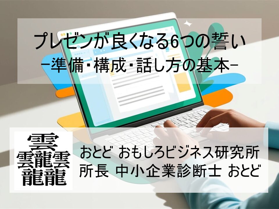今回は色んな「師匠」に教わりながら、私なりにいつも意識してプレゼンに取り組んでいる「6つの誓い」をご紹介したいなと思います。一部「それは違うんとちゃうの」というご指摘もあろうかと思いますが。。。
